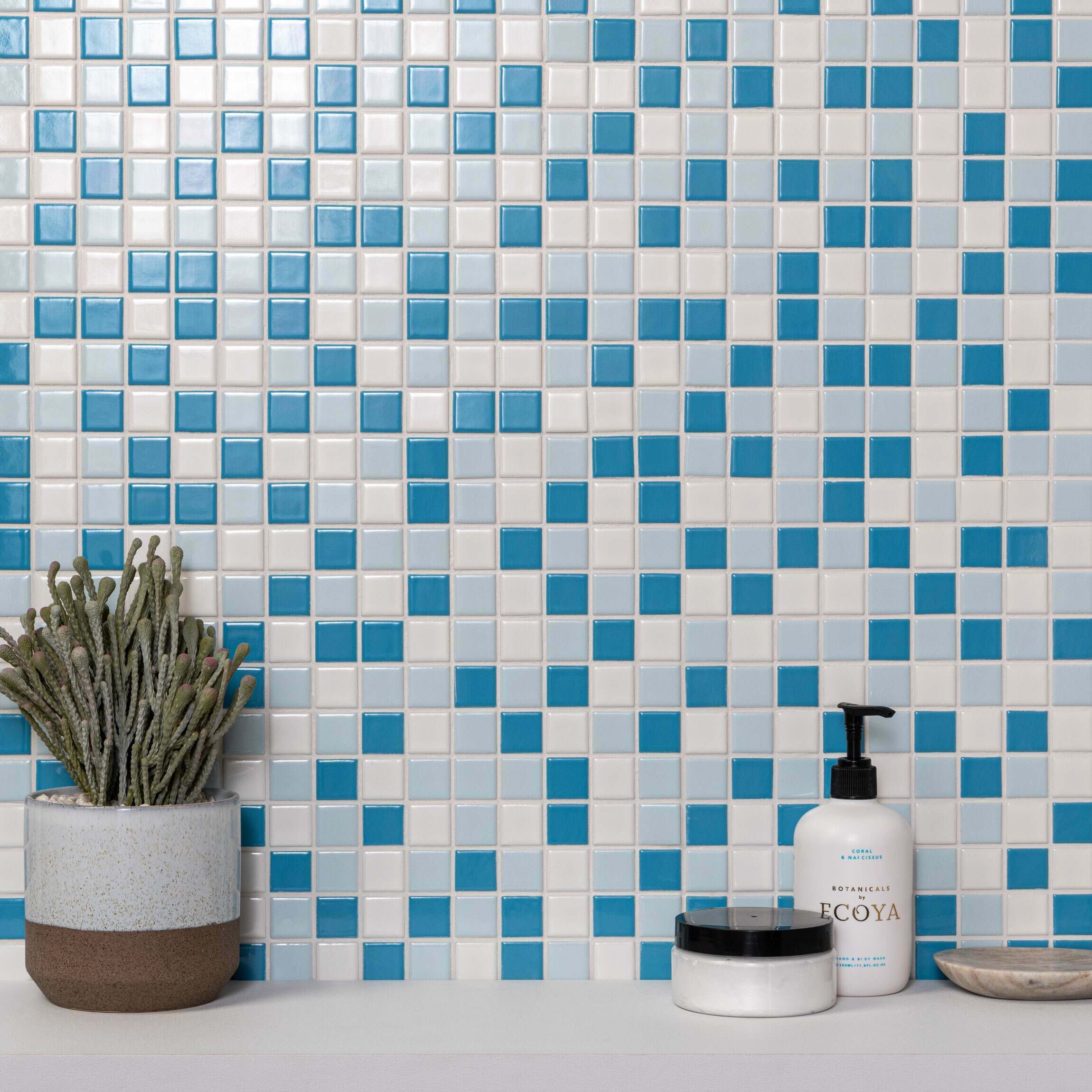 Pixel Pool Blue Blend Mosaic Tiles 25x25