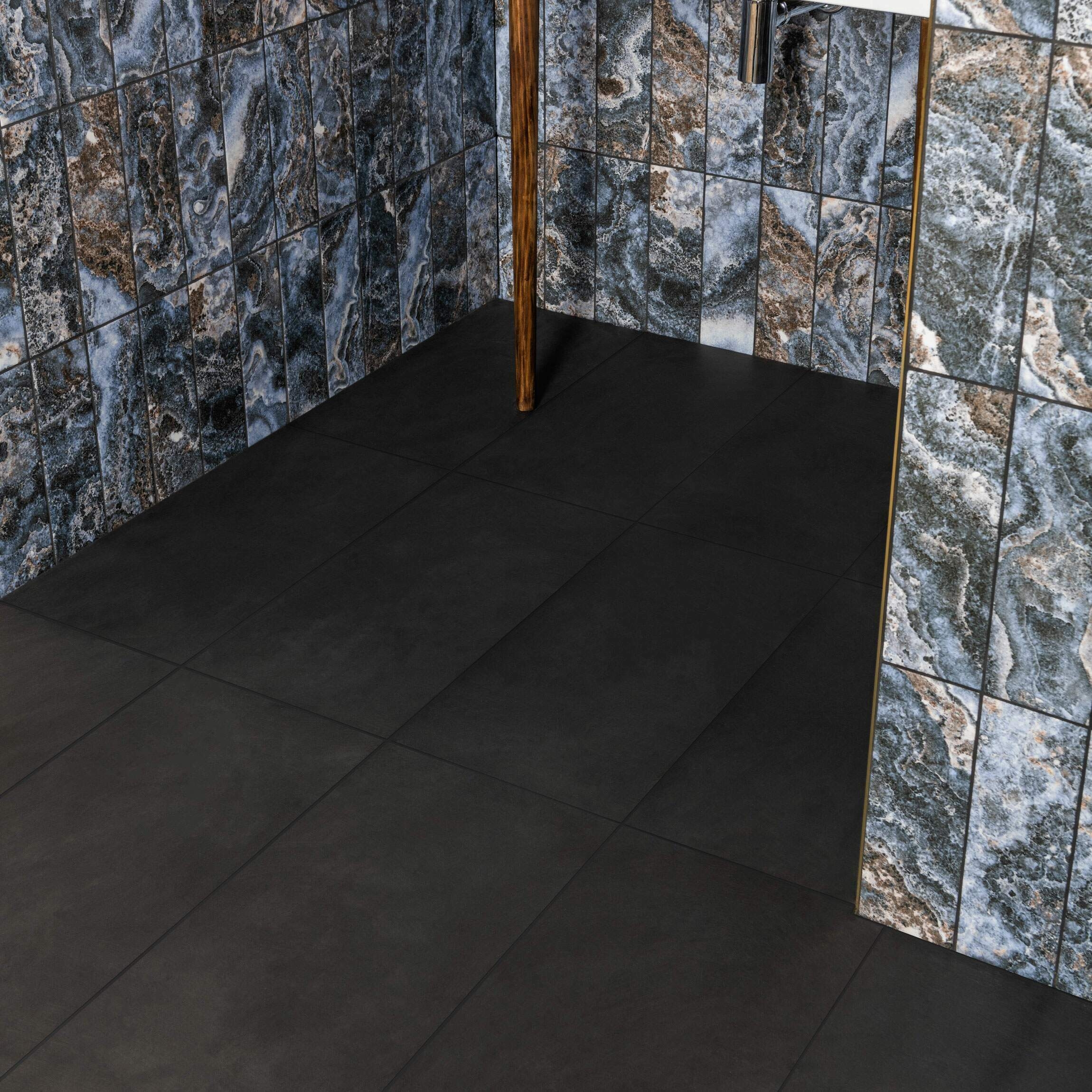Lounge Matt Black Stone Effect Wall And Floor Tiles 600x600