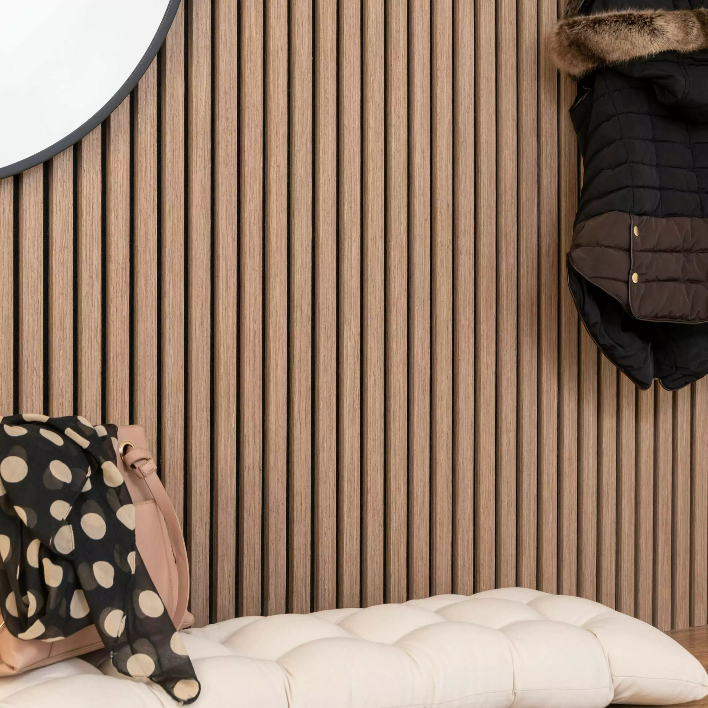 Adhesive fixing also helps keep the visual design simple. Wood slat acoustic wall panels, PET felt acoustic wall panels, and fabric-faced acoustic panels often look more refined without visible fasteners breaking the surface pattern.