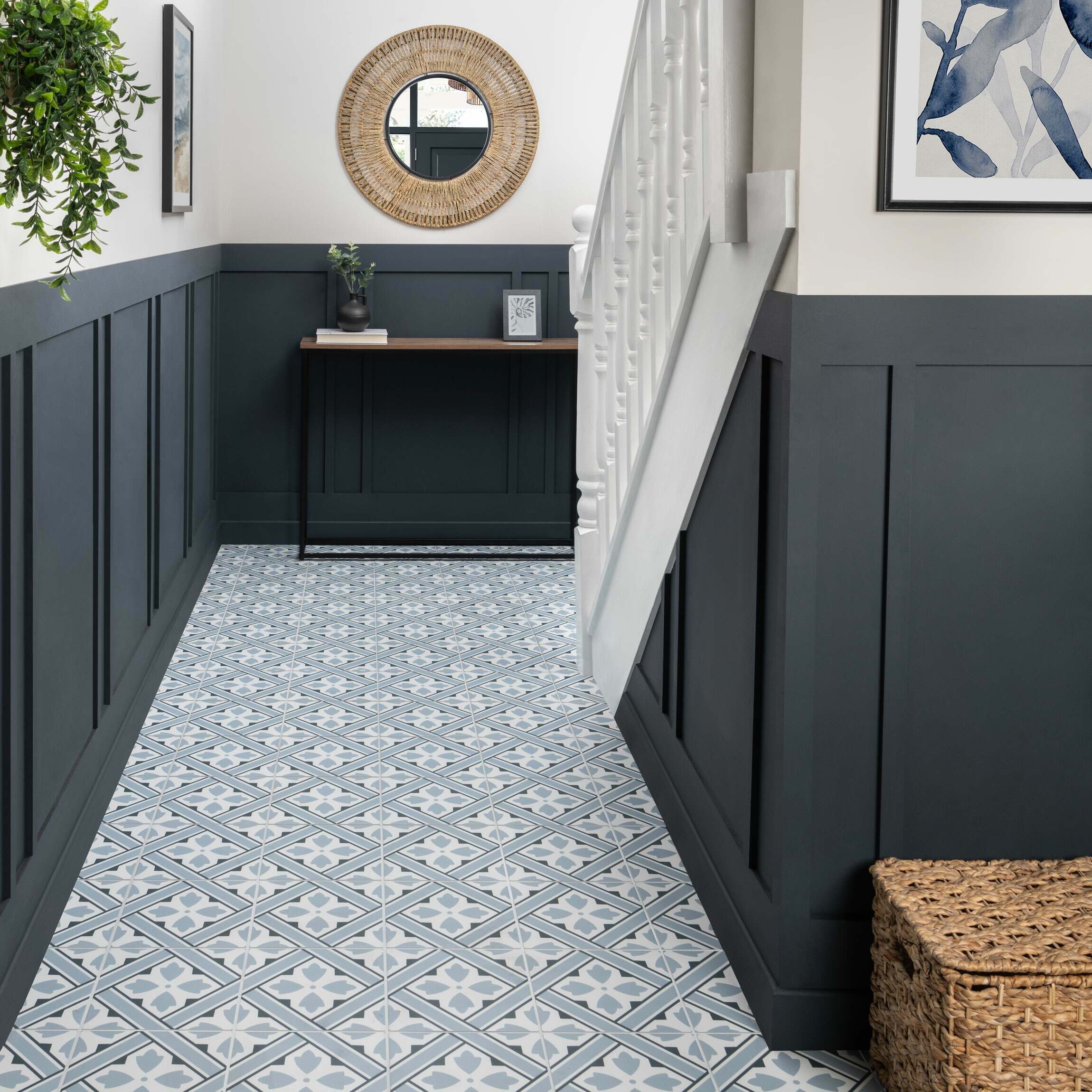 floor tiles offer durability while maintaining a stylish look. In kitchens, our blue patterned
