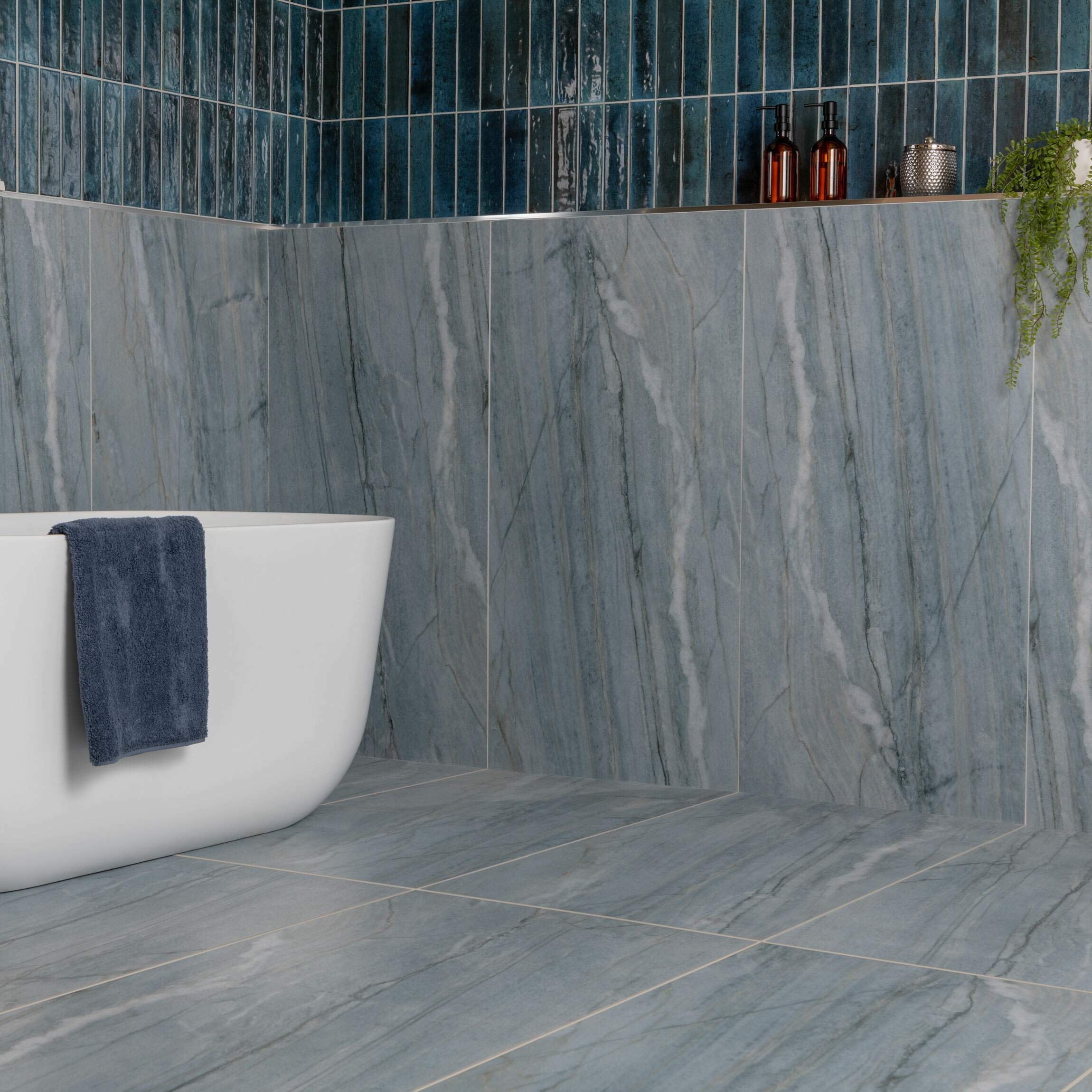 Lustra Blue Marble Effect Porcelain Tiles 600x300