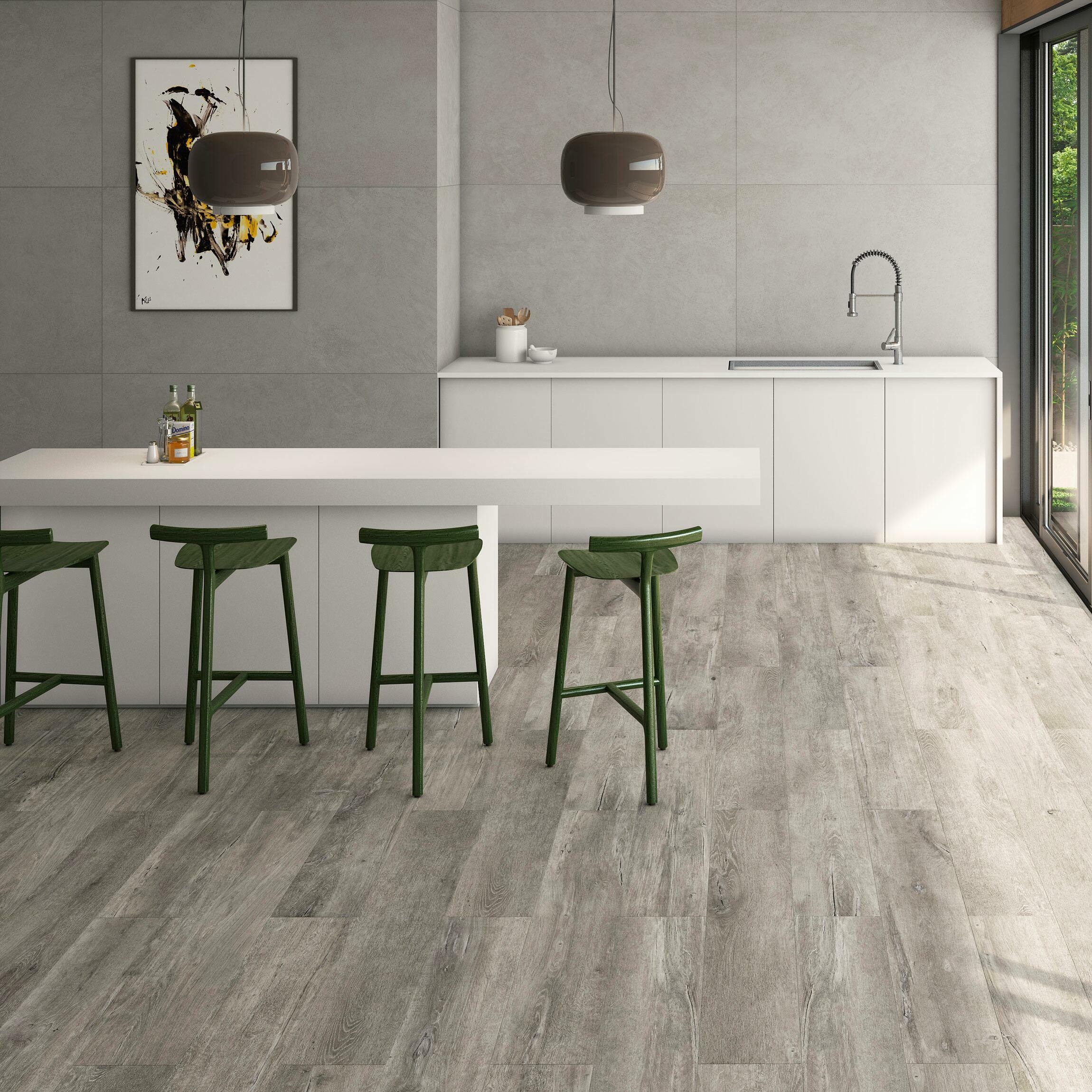 Muniellos Grey Wood Effect Porcelain Floor Tiles 1215x195