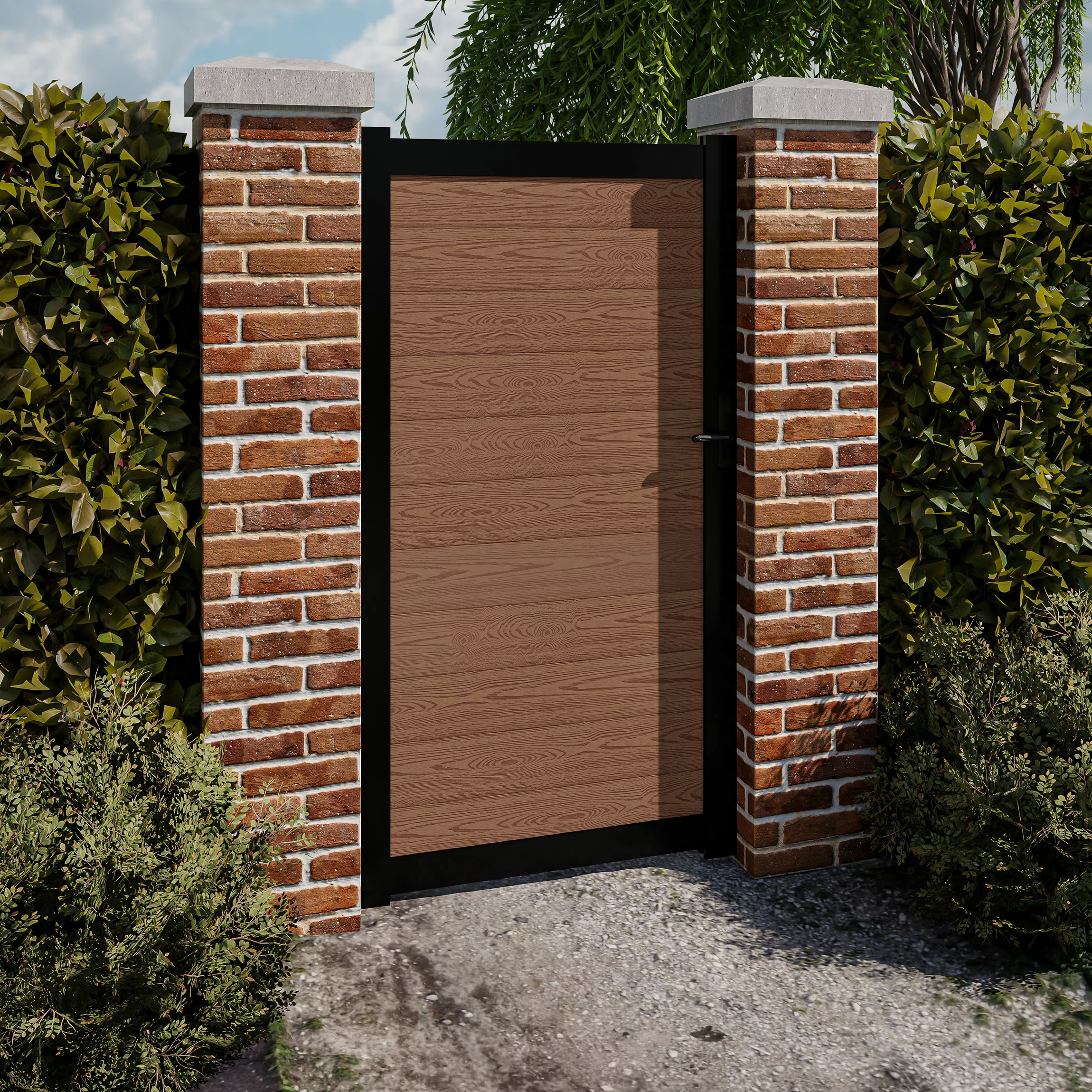 The LuxeLine Classic Teak Pedestrian Side Gates 1730x900mm - Standard Handle Lock bring a natural wood effect look into outdoor spaces without the demanding maintenance of real timber. With a matt teak brown finish, the gate has a warm, versatile style that blends well with a variety of garden designs. Crafted for external use, it offers weather resistance and long-lasting durability, making it a practical alternative to wooden gates. At 1730x900mm, it provides a comfortable size for everyday pedestrian entry. These gates can be paired with LuxeLine composite fencing panels to create a seamless, coordinated boundary around your property.