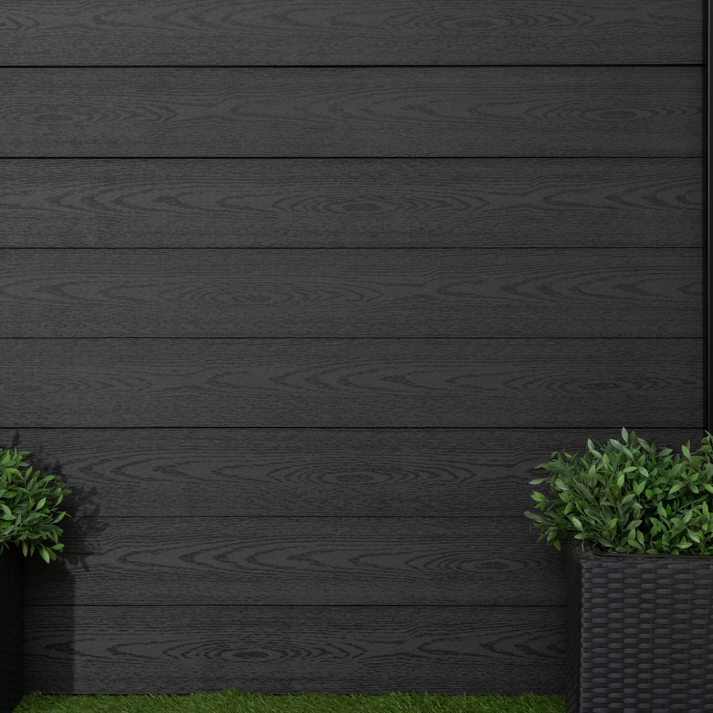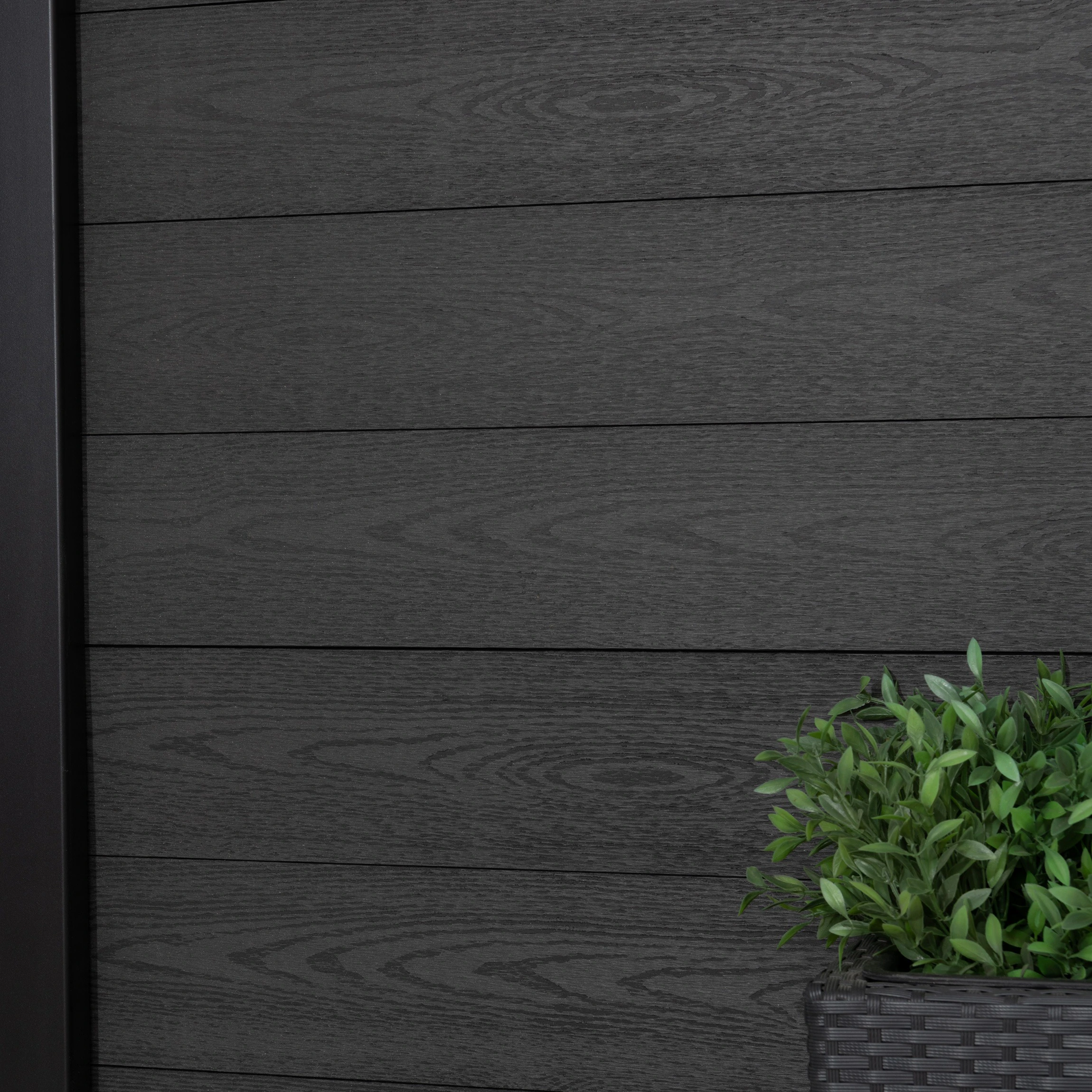 > Modern dark grey fence slats for a sleek, versatile scheme