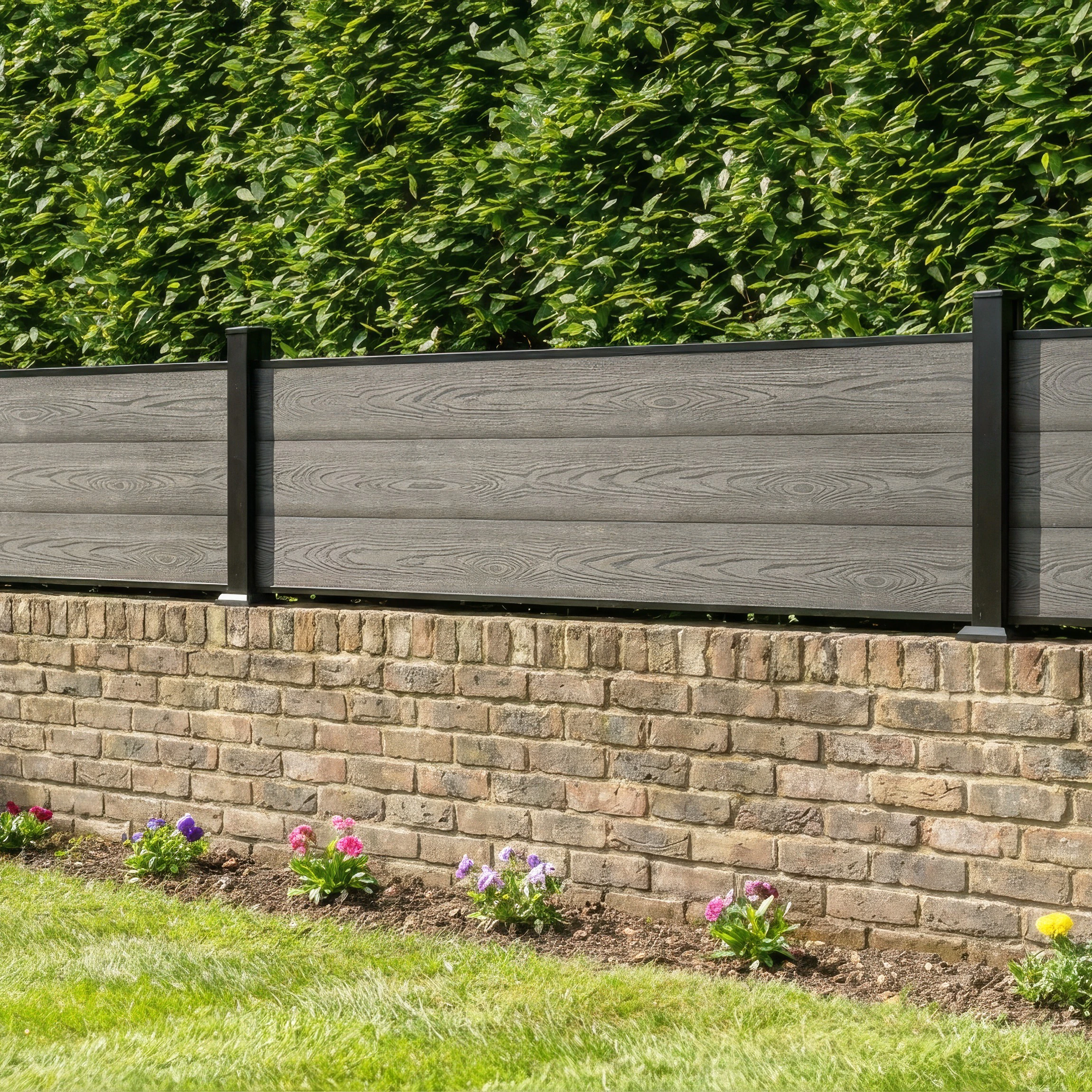 LuxeLine® Light Grey Composite Fence Panel with Aluminium Post