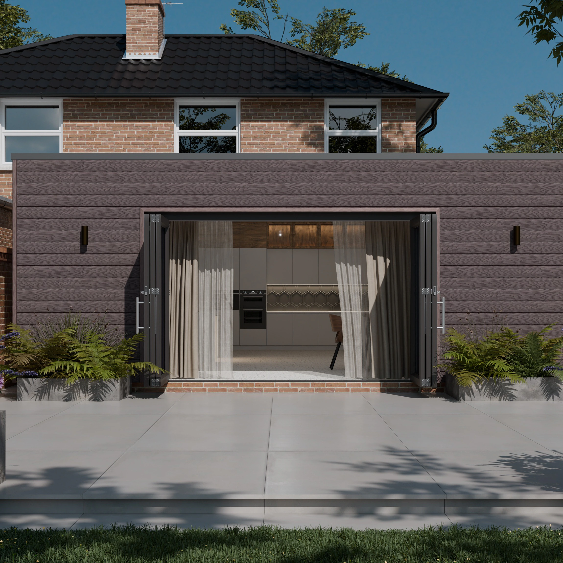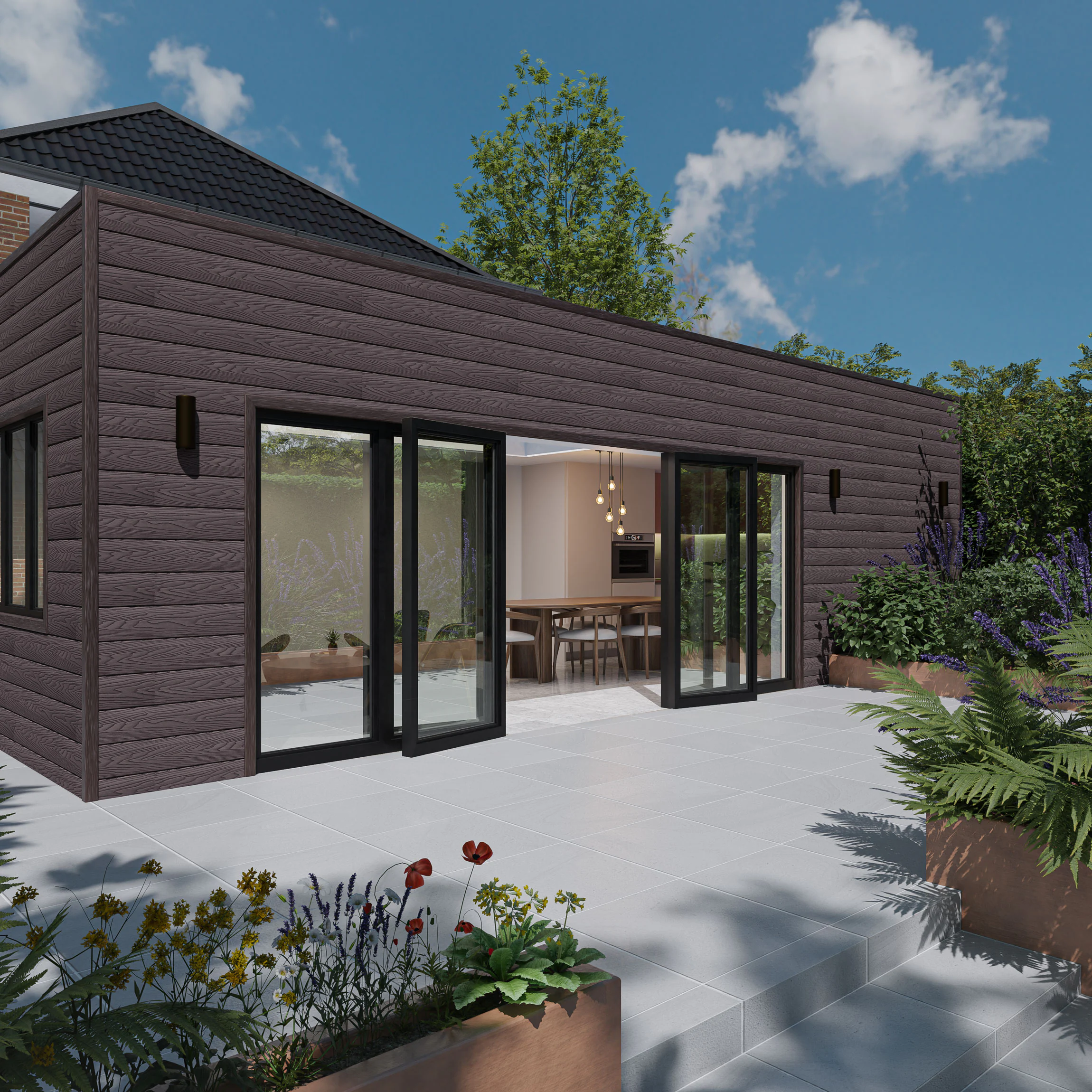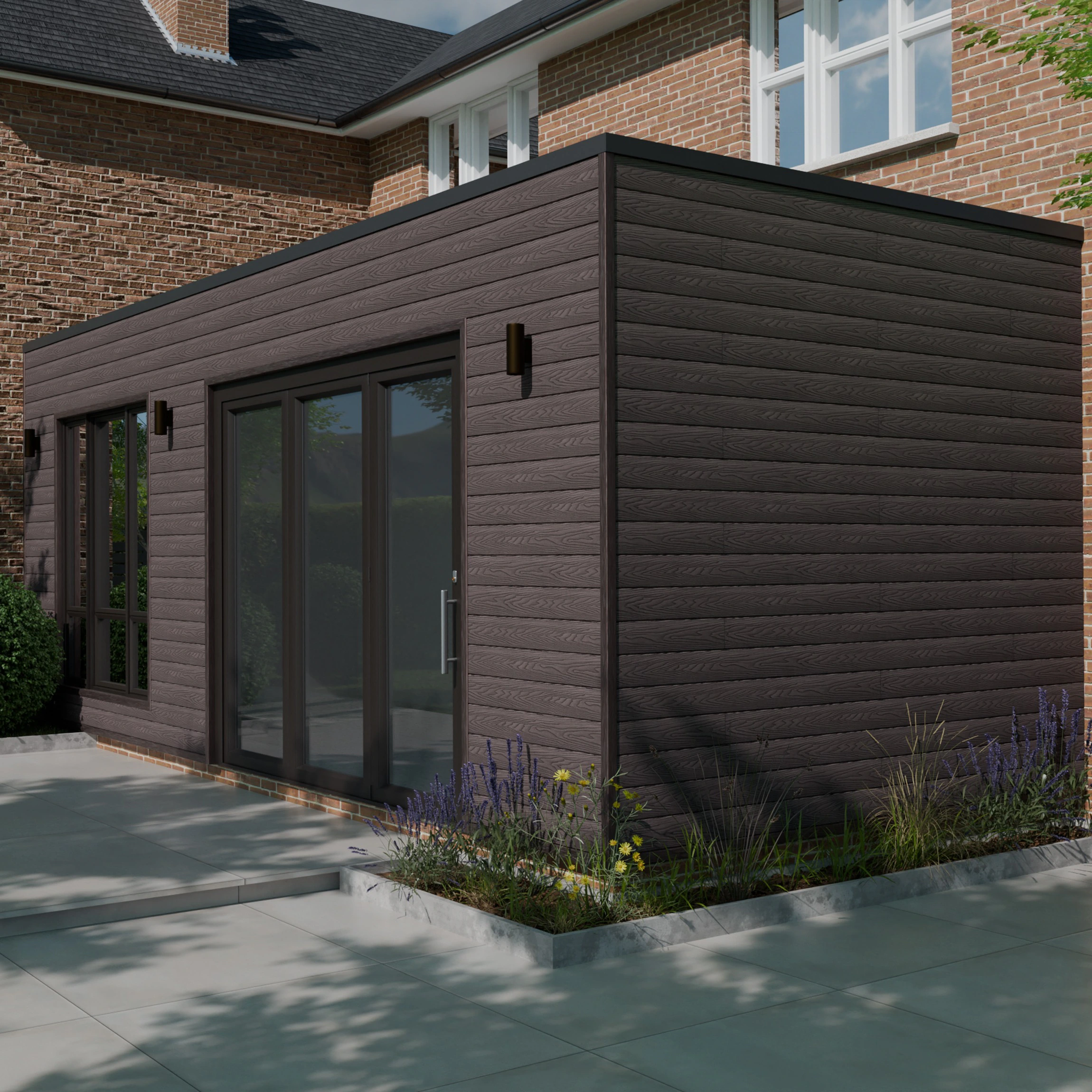 Redefine your exterior spaces with LuxeLine® Cladding , where contemporary design meets long-lasting performance. Expertly engineered from a durable blend of recycled wood fibres and plastics, each panel features a solid composite core encased in a protective polymer shell, delivering outstanding resistance to weathering, fading, and moisture. The classic shiplap profile, paired with a deep 3D texture, authentically recreates the rich, natural appearance of walnut timber while benefiting from advanced composite technology for minimal maintenance and long-term durability. Easy DIY-friendly installation – (see the Cladding Installation Guide), LuxeLine® Shiplap Panels are suitable for both residential and commercial applications. With an eco-conscious composition, realistic timber finish, and robust construction, LuxeLine® Composite Cladding are the ideal choice for those seeking modern aesthetics, durability, and effortless upkeep.
