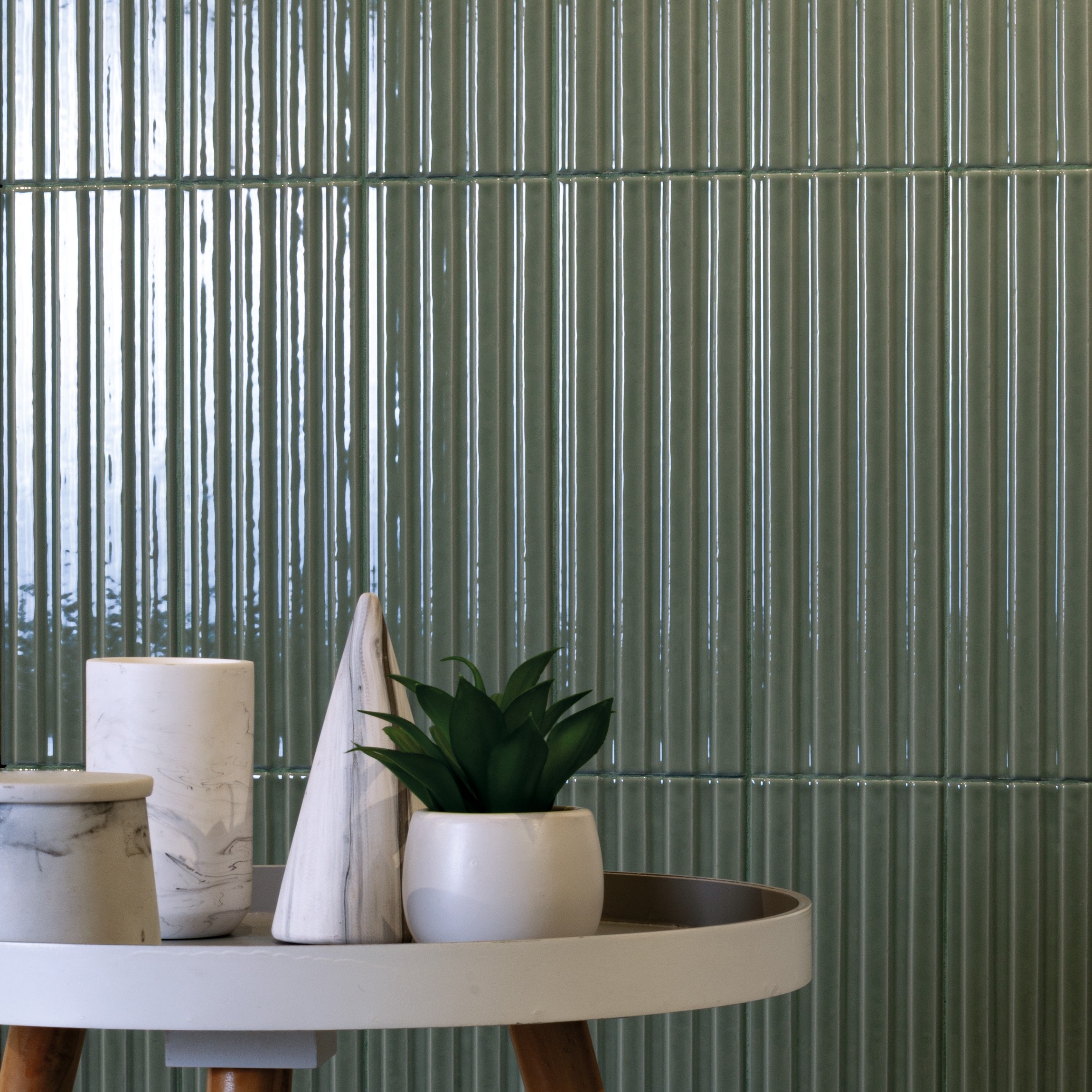 Ribbon Sage Green Ceramic Gloss Wall Tiles