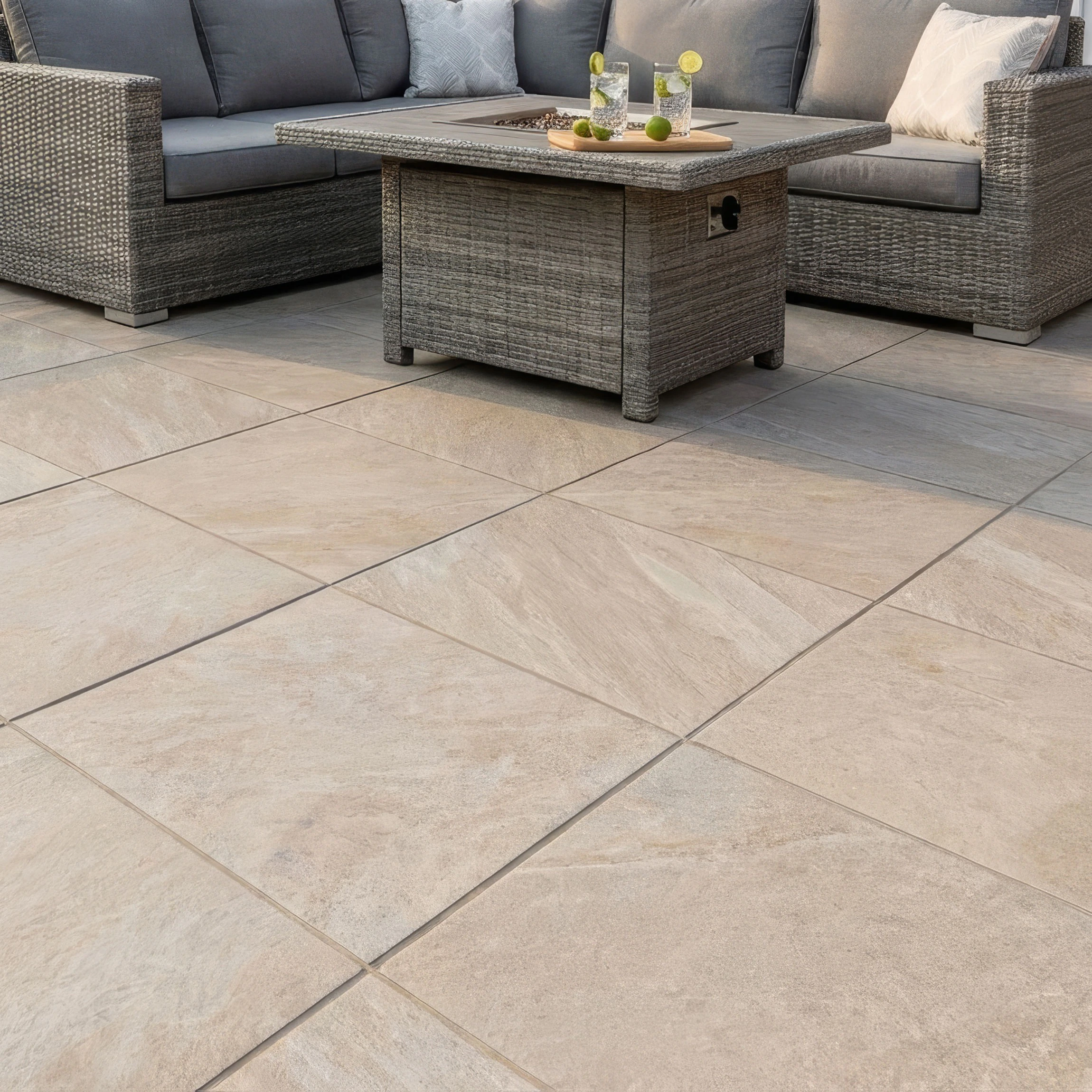 Quarstone Beige Stone Effect Matt Anti Slip Outdoor Porcelain Slab