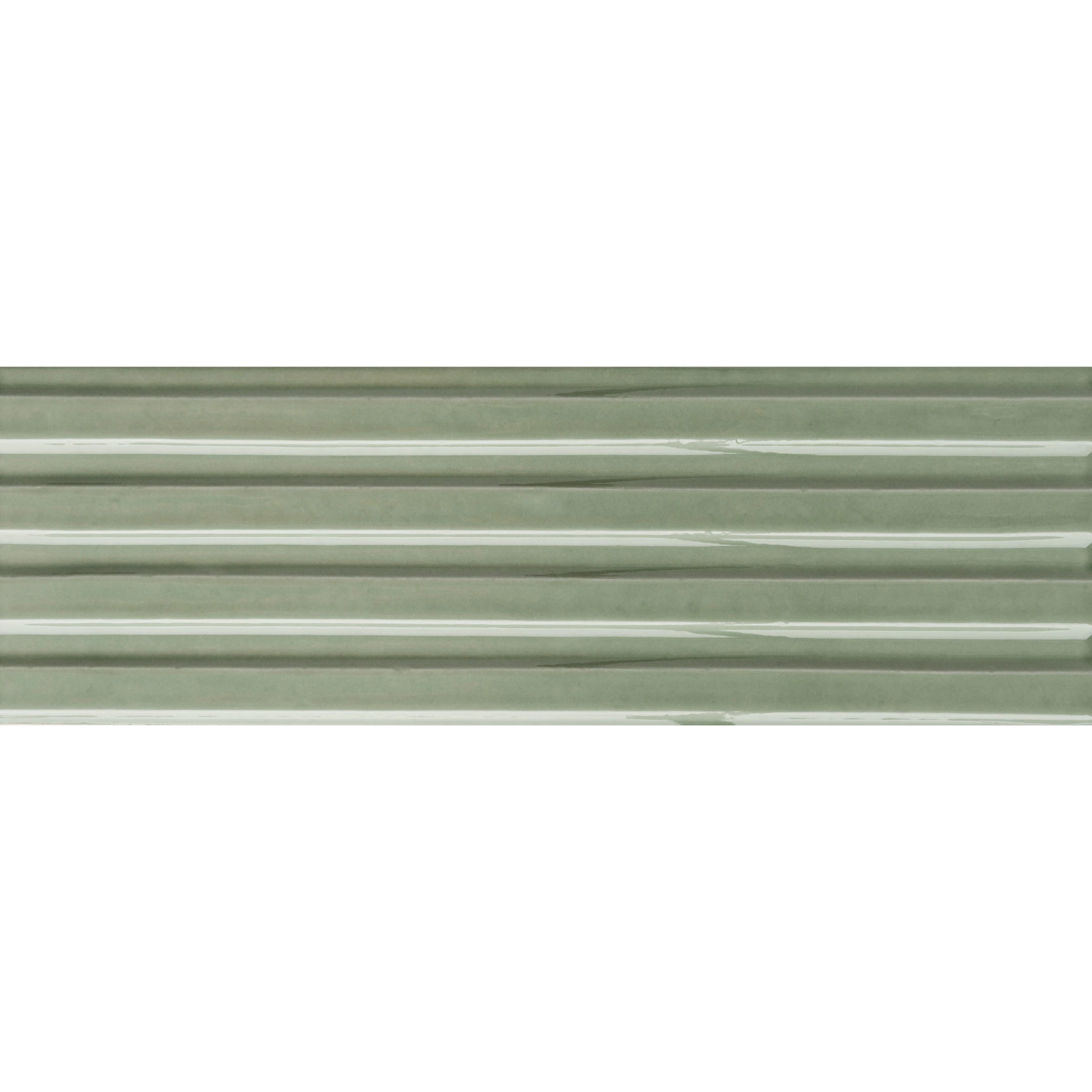 Ribbon Sage Green Ridged Effect Ceramic Gloss Wall Tiles