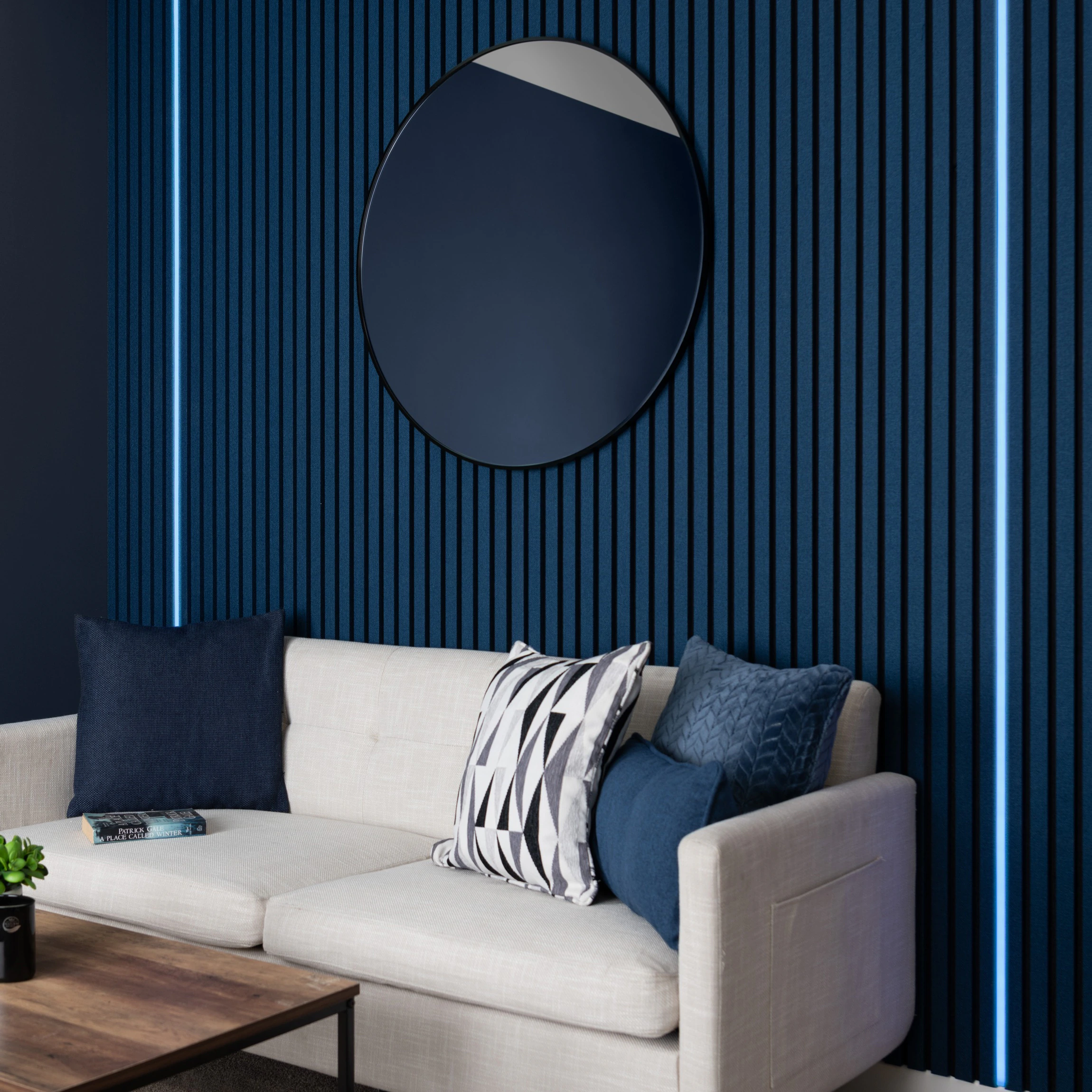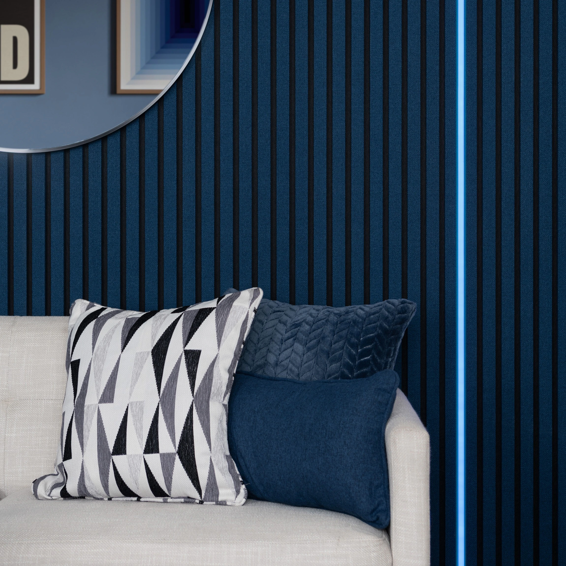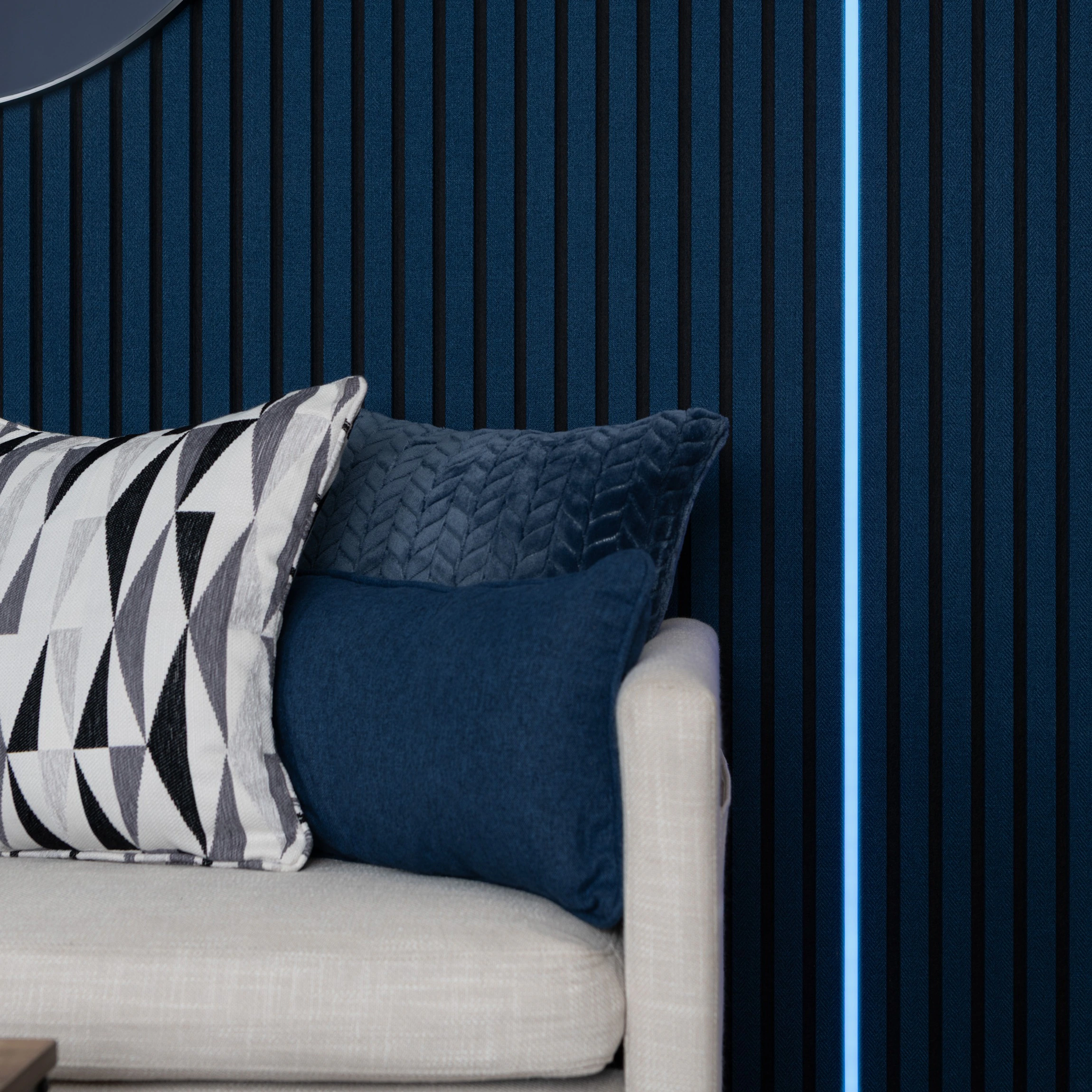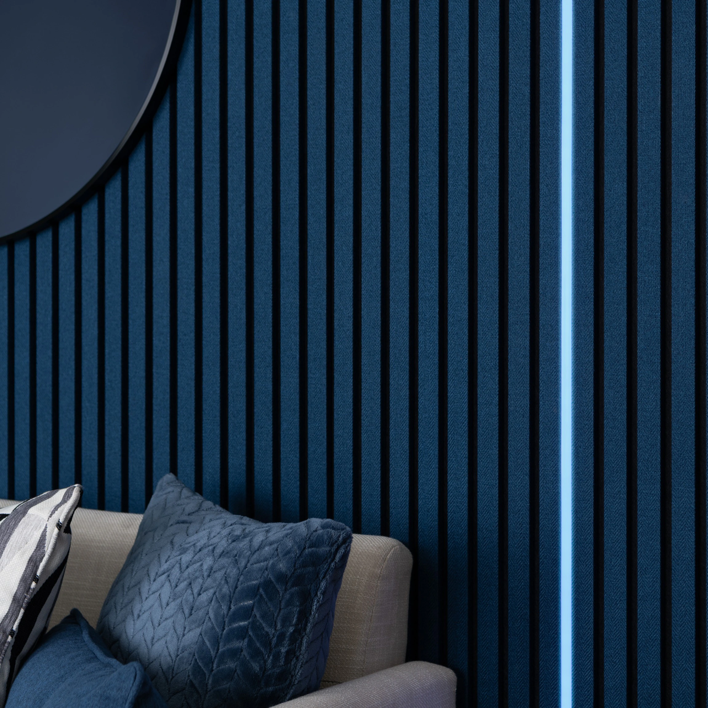 > Bright, even illumination enhances wall panel textures