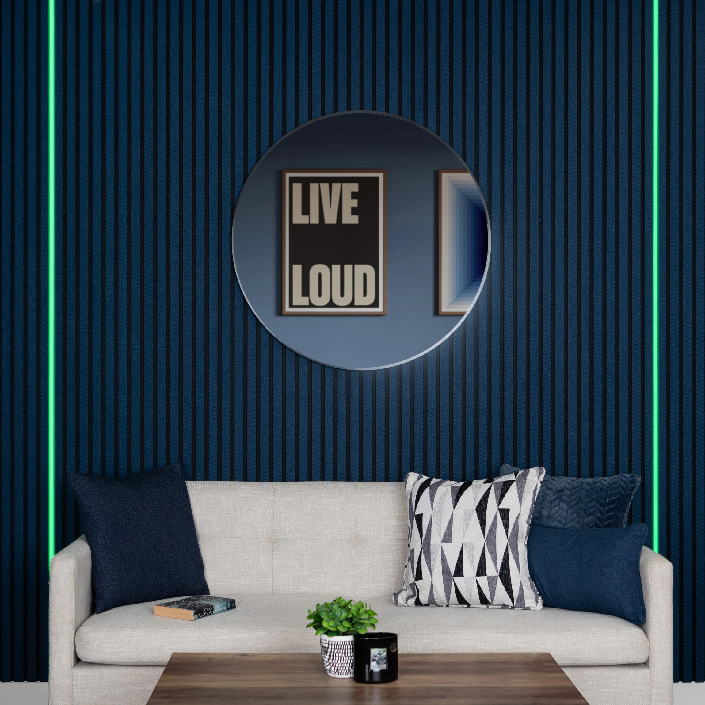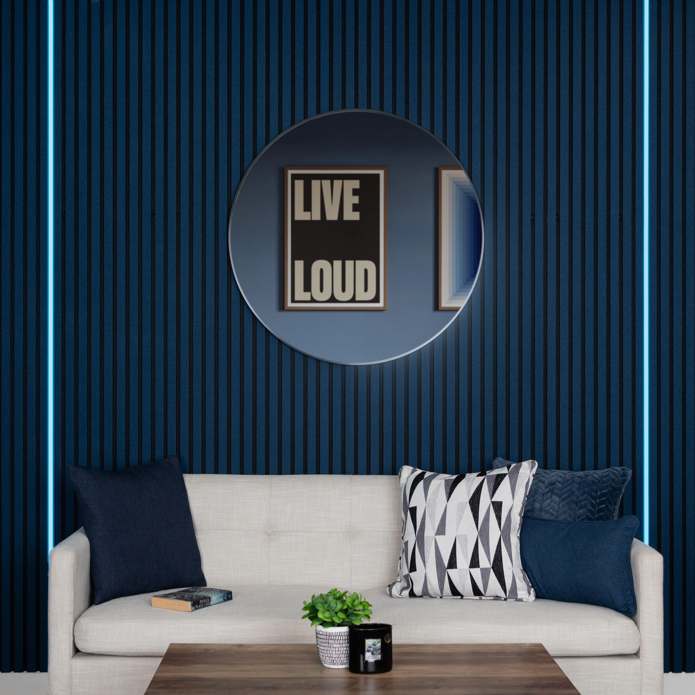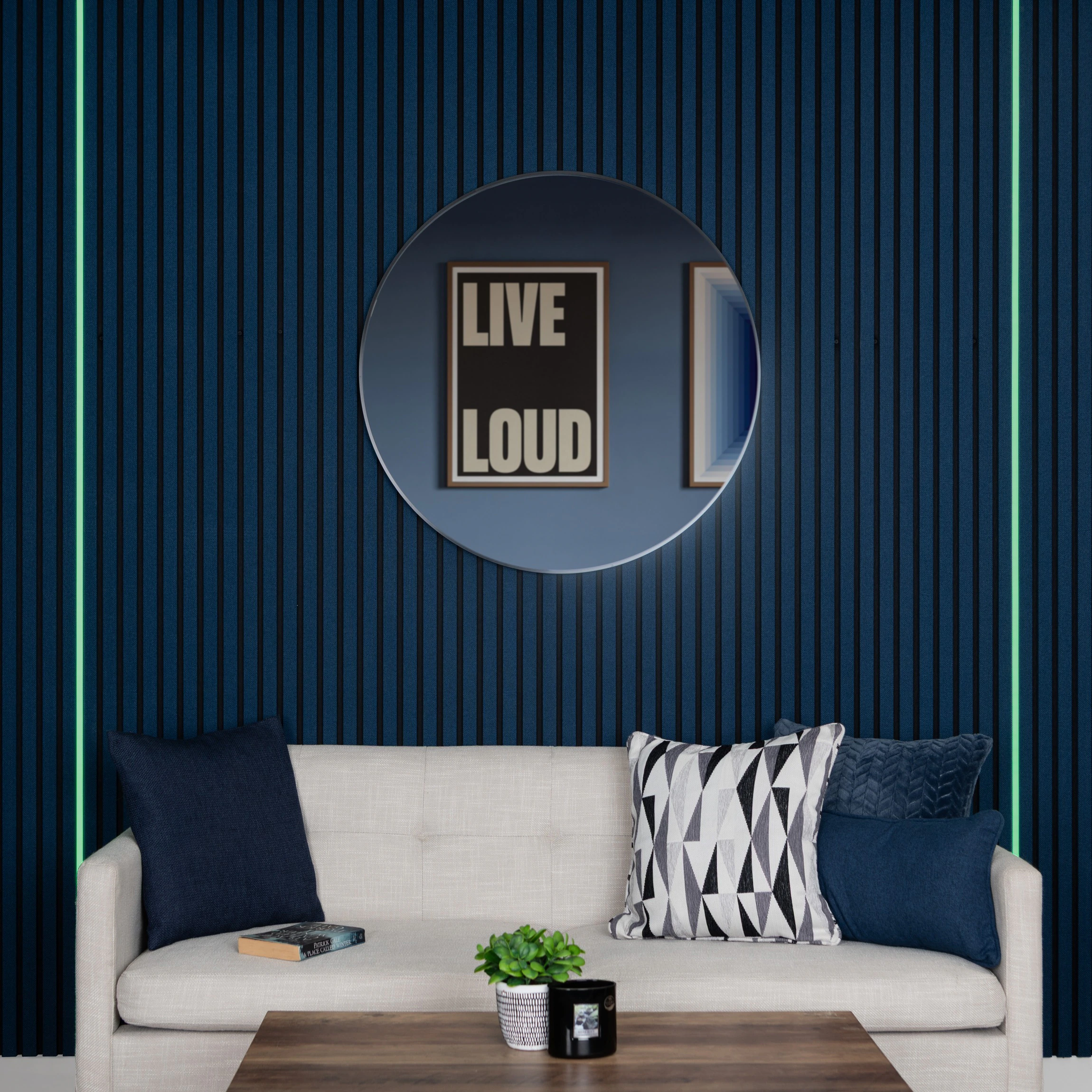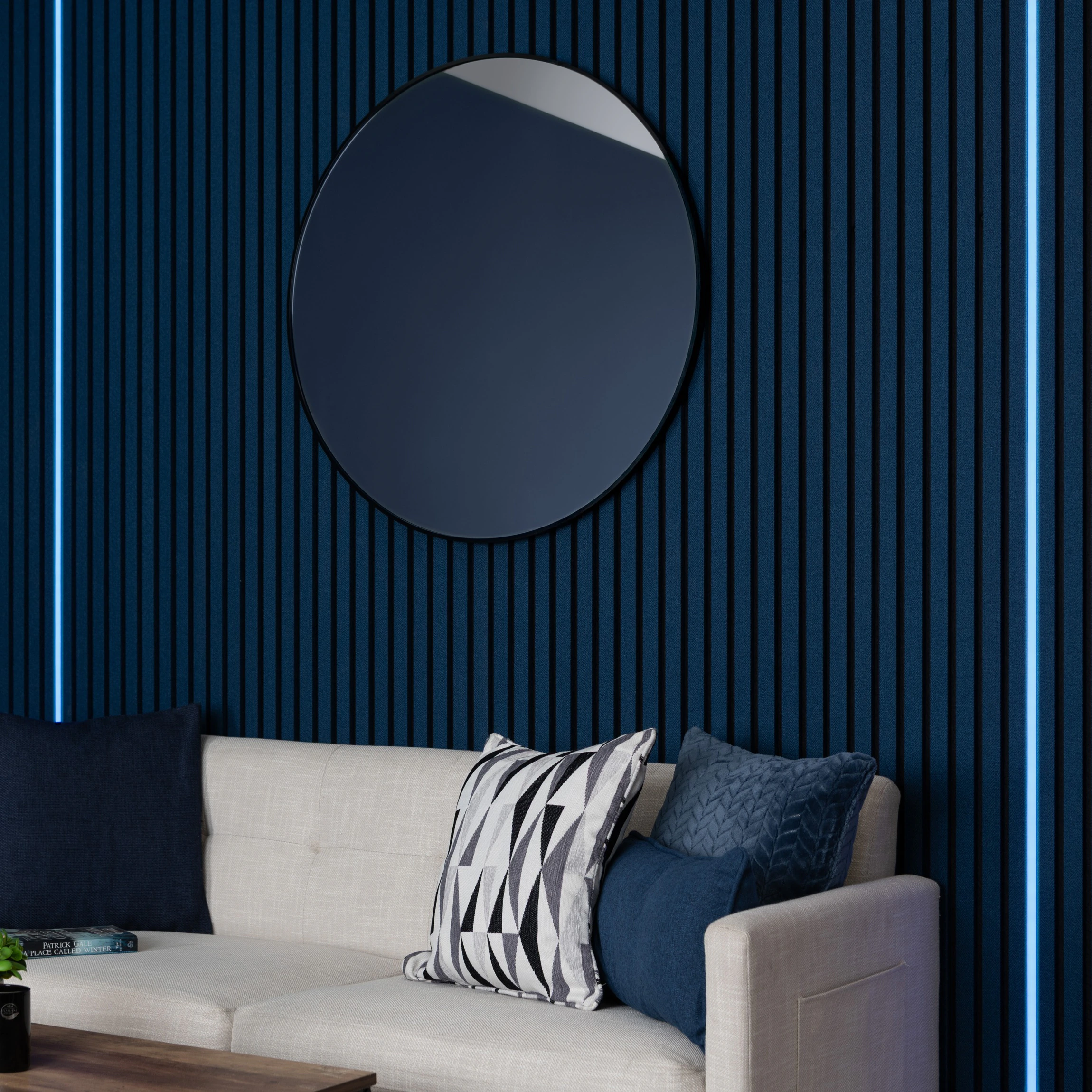 > Bright, even illumination enhances wall panel textures