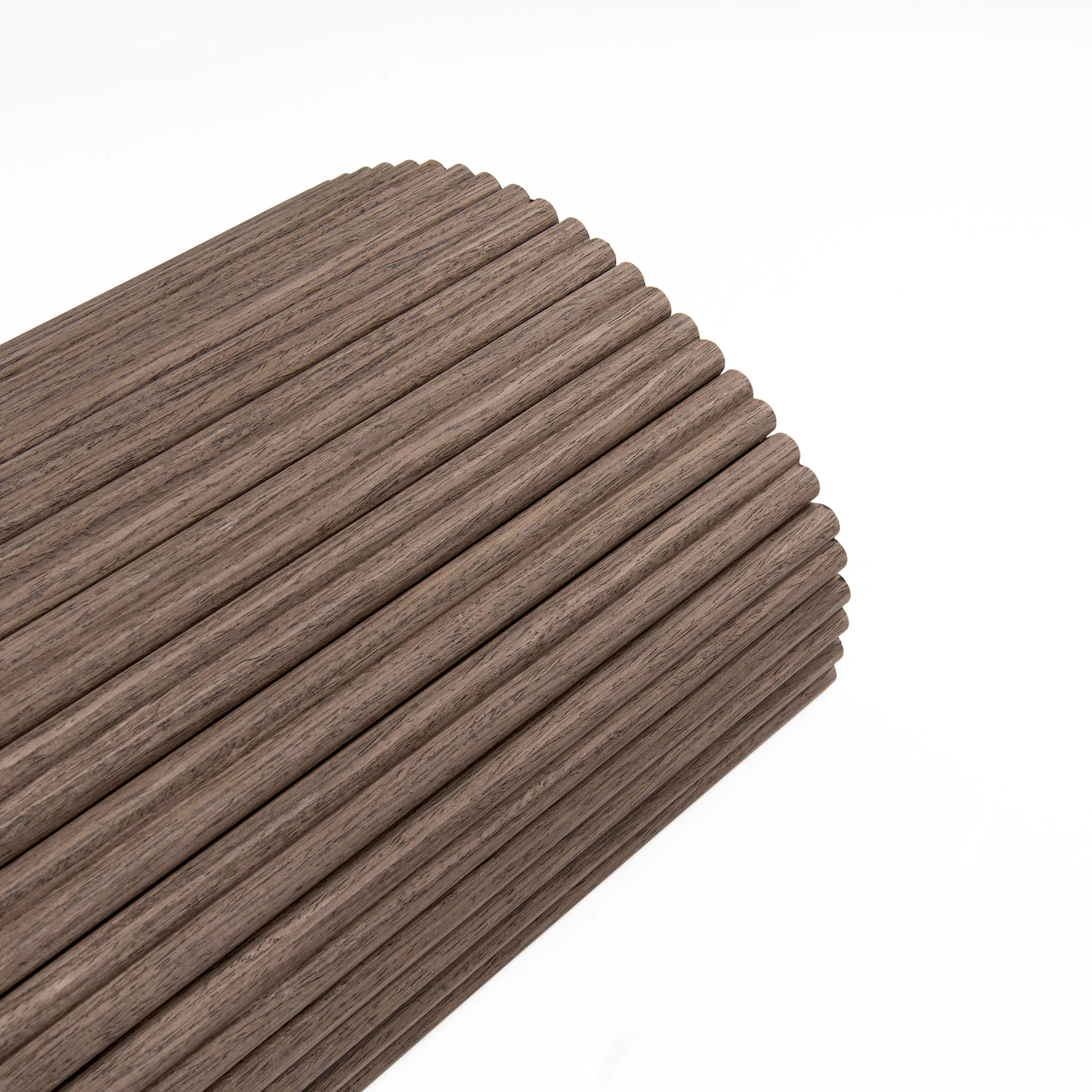 Curves, corners, and creative flair - Trepanel Flex® Walnut is made to move with the structure of your home. These flexible wall panels feature a double semi-circle design crafted from FSC-certified MDF, backed with ultra-thin felt to bend effortlessly around surfaces for seamless wood panelling on feature walls and even furniture! Each slat is wrapped in real wood veneer for an authentic look and feel, with all sides beautifully finished for a high-end, wraparound effect. The timeless walnut wood colouring brings a comforting elegance to interiors - a classic shade that complements both contemporary and traditional spaces.