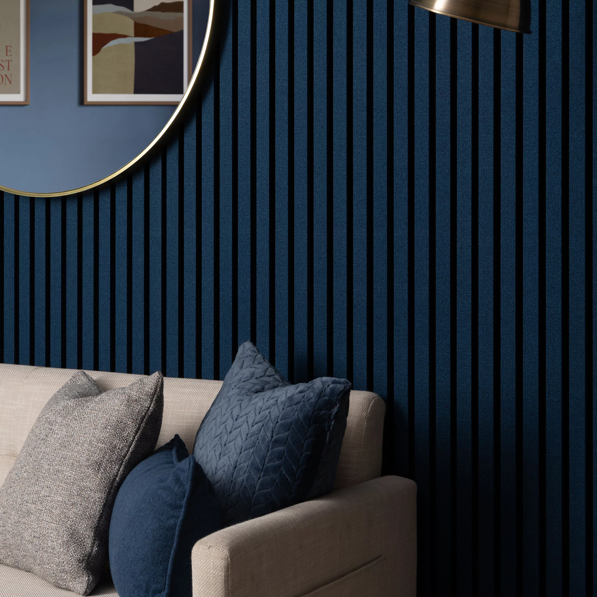 Trepanel® Texture Denim Blue Herringbone Acoustic Wood & Felt Slat Panels